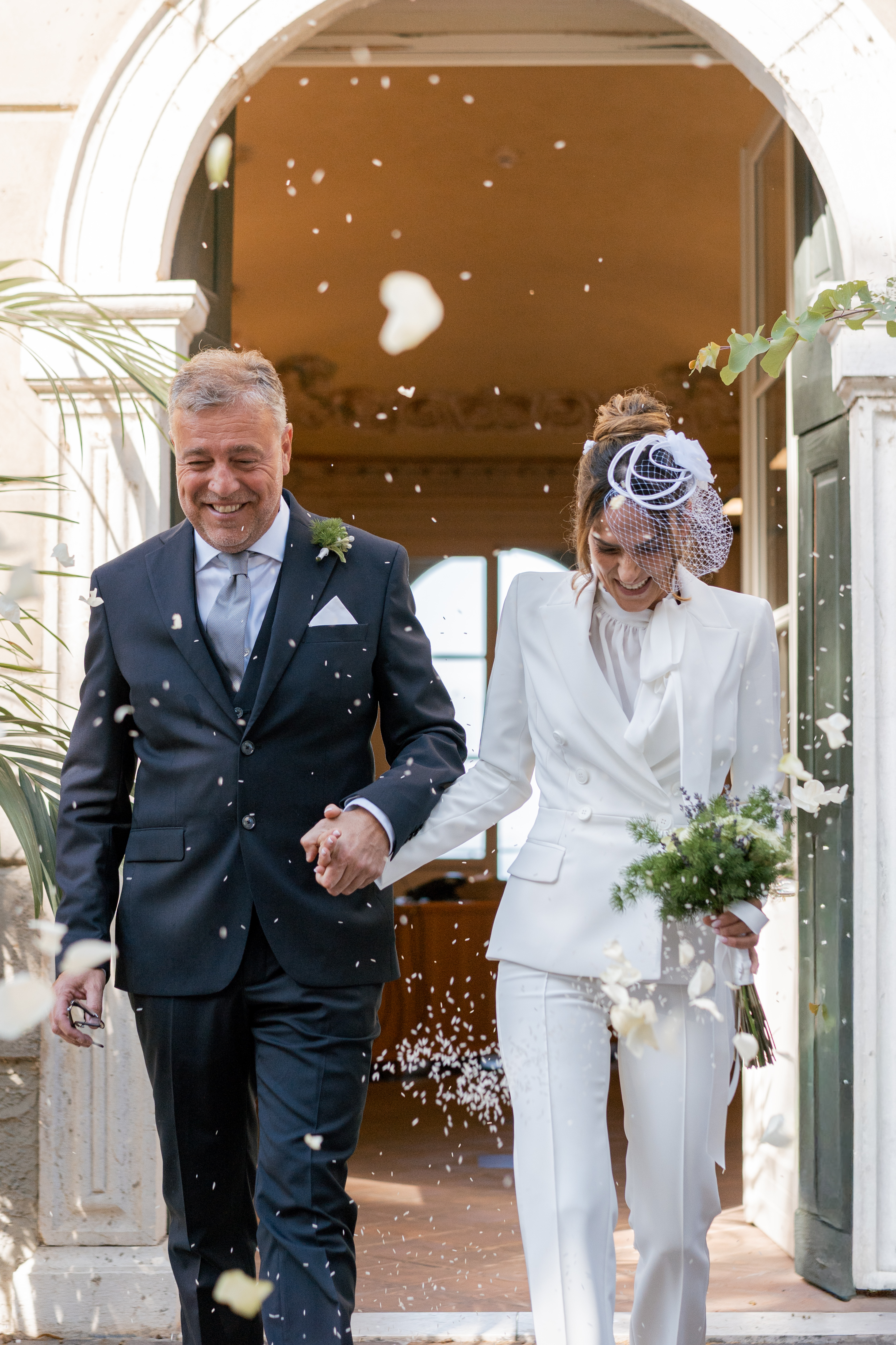Al Comune di Padenghe, Marci aspettava insieme ai testimoni e agli amici. L’atmosfera era serena, leggera, fatta di sorrisi, sguardi complici e piccoli momenti di condivisione. Quando Bianca è entrata nella sala, il tempo si è fermato. Indossava un tailleur completo bianco, una scelta inaspettata rispetto all’abito tradizionale che molti si aspettavano. Lo stupore ha attraversato la stanza, arrivando fino a Marci, che non ne era a conoscenza. Tra silenzi carichi di emozione e qualche lacrima, è arrivato il momento del “sì”. Poi il bacio. E, infine, gli applausi, quelli spontanei, sinceri.