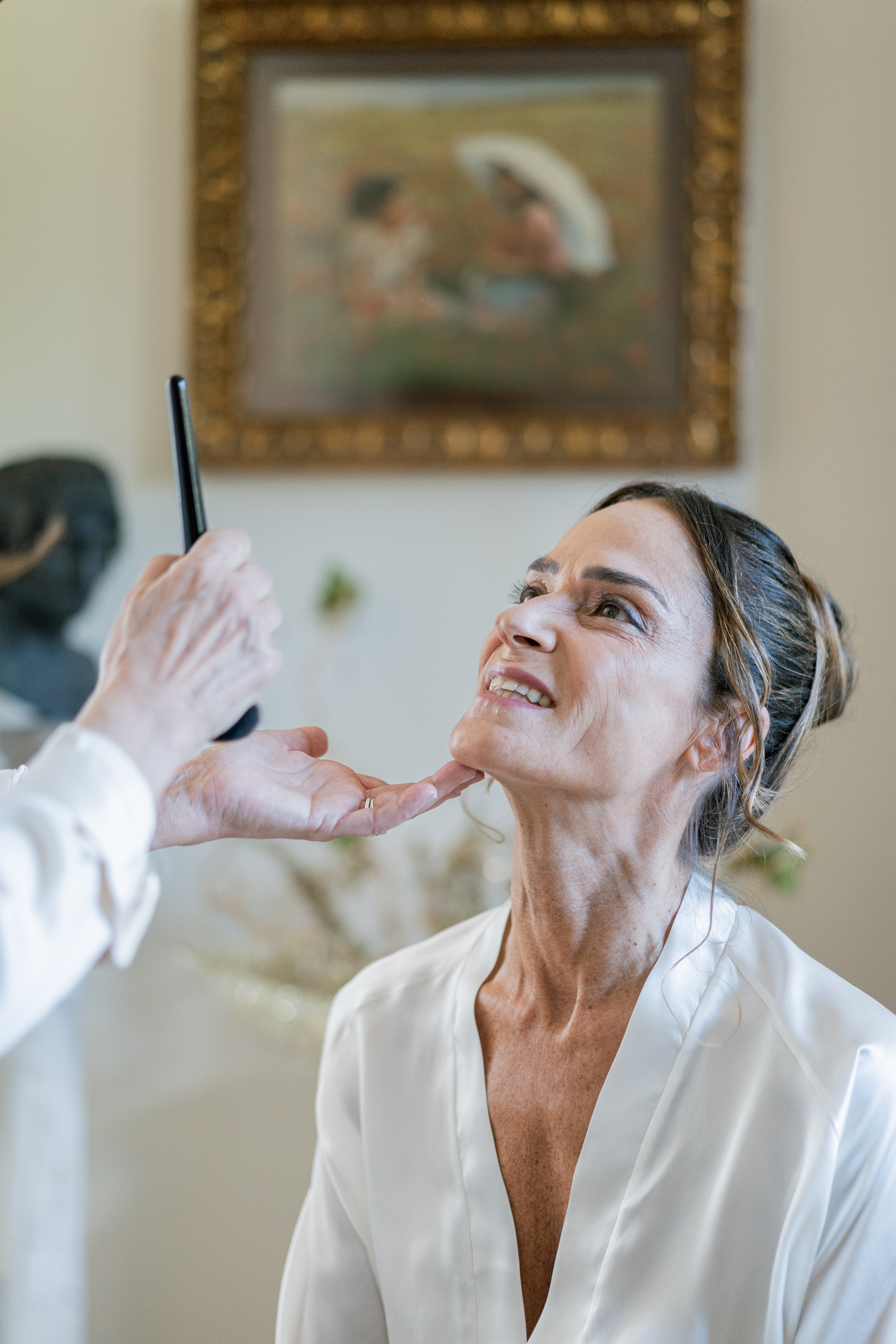 Desenzano e l’Hotel Rosa: l’inizio della giornata La giornata è iniziata a Desenzano del Garda, all’Hotel Rosa, una location elegante affacciata sul centro, scelta per accogliere i preparativi di Cristiane. Dopo giorni di pioggia, il tempo ha deciso di concedere una tregua. La luce era chiara, morbida, calda. Una di quelle giornate che sembrano arrivare apposta. Cristiane si preparava in camera insieme a un’amica. L’emozione era forte, ma composta. Le abbiamo chiesto di sedersi sul divano, avvolta dalla luce bianca che entrava dalla finestra: il suo volto, il suo corpo e la sua presenza erano semplicemente intensi.