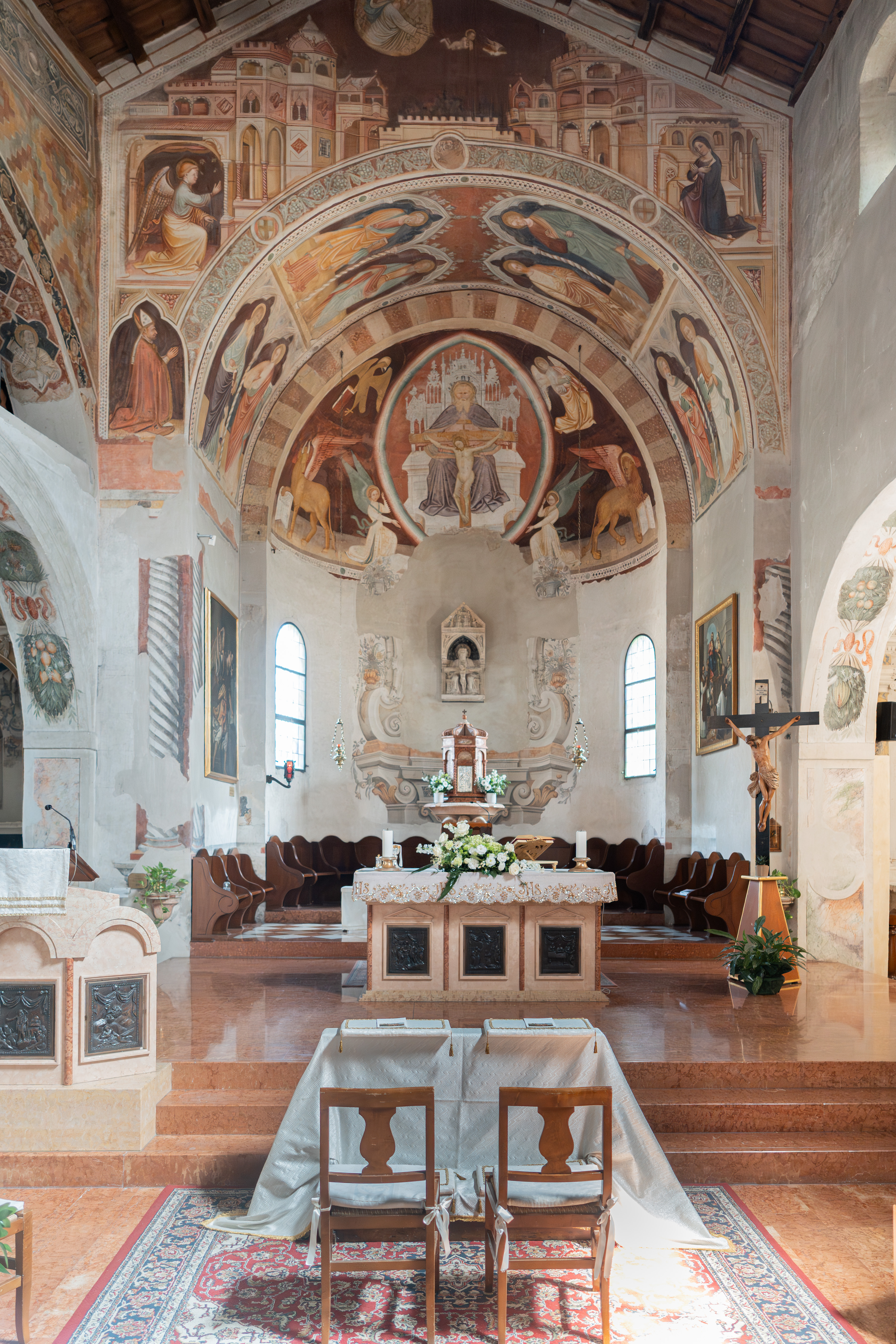 La cerimonia e un arrivo inaspettato. La messa è stata semplice, classica, intensa. Poi, a un certo punto, io e il mio partner abbiamo notato qualcosa in lontananza. Un cane. Con un ciondolo. E sopra… gli anelli. Un momento totalmente inaspettato. Con grande attenzione ci siamo mossi lungo il corridoio centrale, accucciati, cercando di raccontare la scena senza disturbare gli sposi né gli invitati. Per me è fondamentale non essere d’intralcio, né all’evento né agli altri professionisti. Era un labrador bellissimo, accompagnato dal fratello della sposa. Un momento autentico, naturale, accolto con serenità anche dal sacerdote. Una di quelle scene che non dimentichi, e che non avevo mai visto prima.