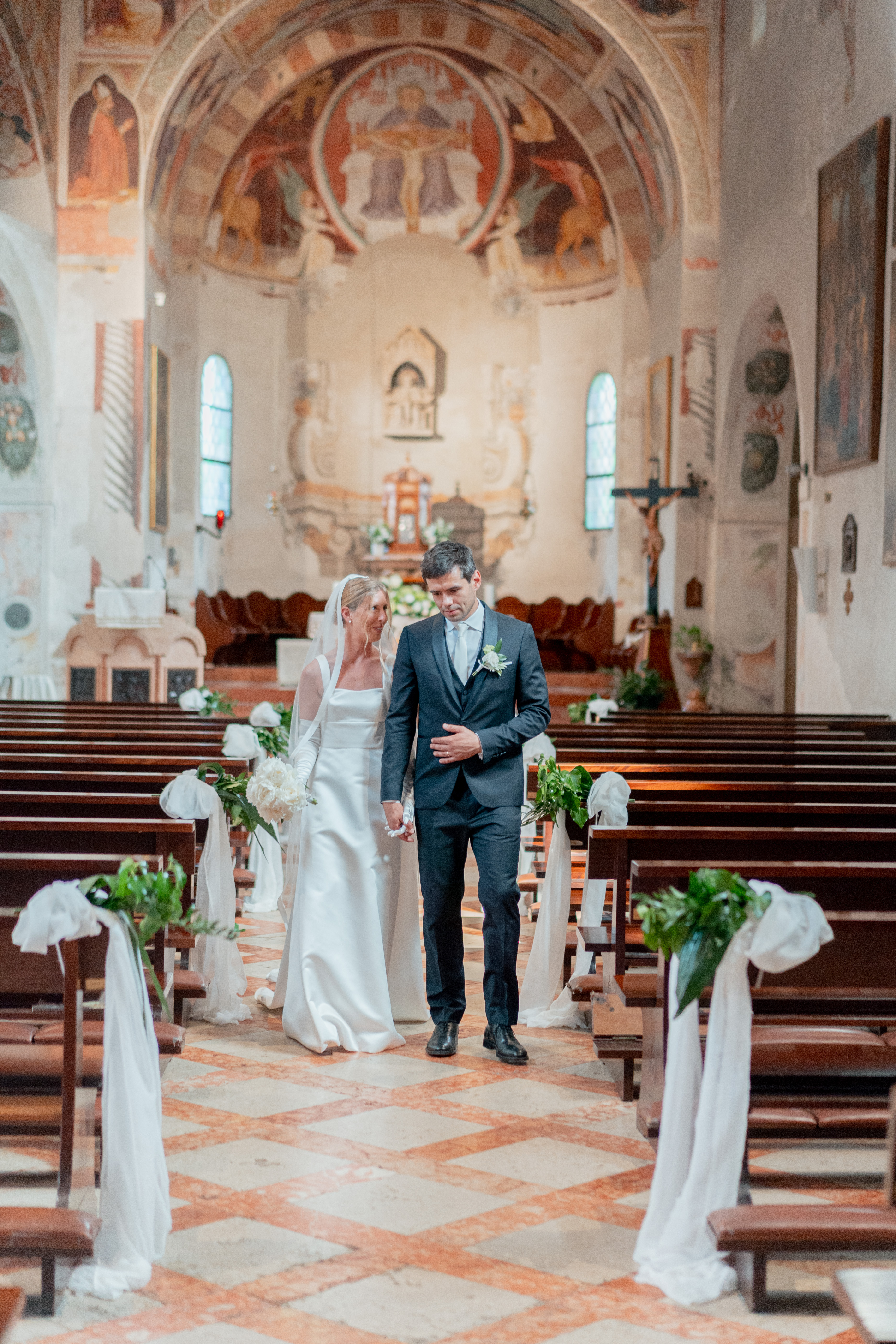 Una giornata che ricorderò a lungo. Il 20 giugno 2025 lo ricordo molto bene. I giorni precedenti erano stati piovosi, incerti, ma quella giornata ha deciso di sorprenderci. Ero a Verona con il mio partner. Erano circa le due del pomeriggio quando ci siamo ritrovati davanti alla Chiesa della Santissima Trinità, insieme alla wedding planner e alla fiorista. Il caldo era intenso, quasi irreale. La strada in marmo bianco amplificava la luce e il calore, e dopo appena mezz’ora eravamo già tutti “sciolti”. Poi, dietro al cancello, hanno iniziato ad arrivare i primi ospiti. Da lì, la giornata è davvero iniziata.