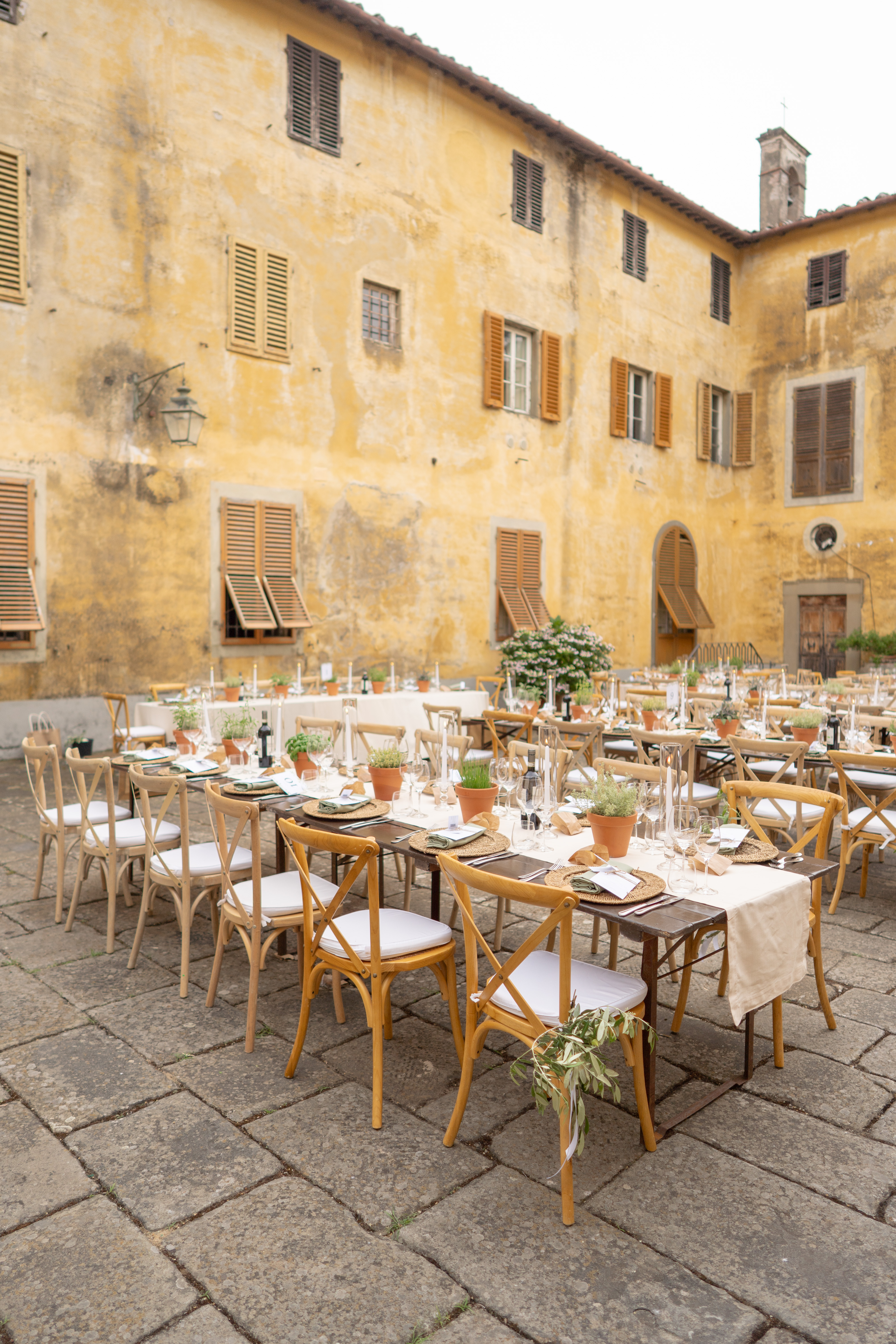 Hamish e Claire arrivano da Londra. Gentili, eleganti, profondamente “british” nel modo di porsi, ma con un’energia calorosa che ha riempito ogni spazio della giornata. Il loro matrimonio in Toscana, ad Arezzo, ha riunito oltre 300 invitati in una delle location più imponenti della zona: Fattoria Casanova, una villa storica immersa tra ulivi, colline e luce morbida estiva. Un evento di questa portata richiede visione, organizzazione e una squadra solida.