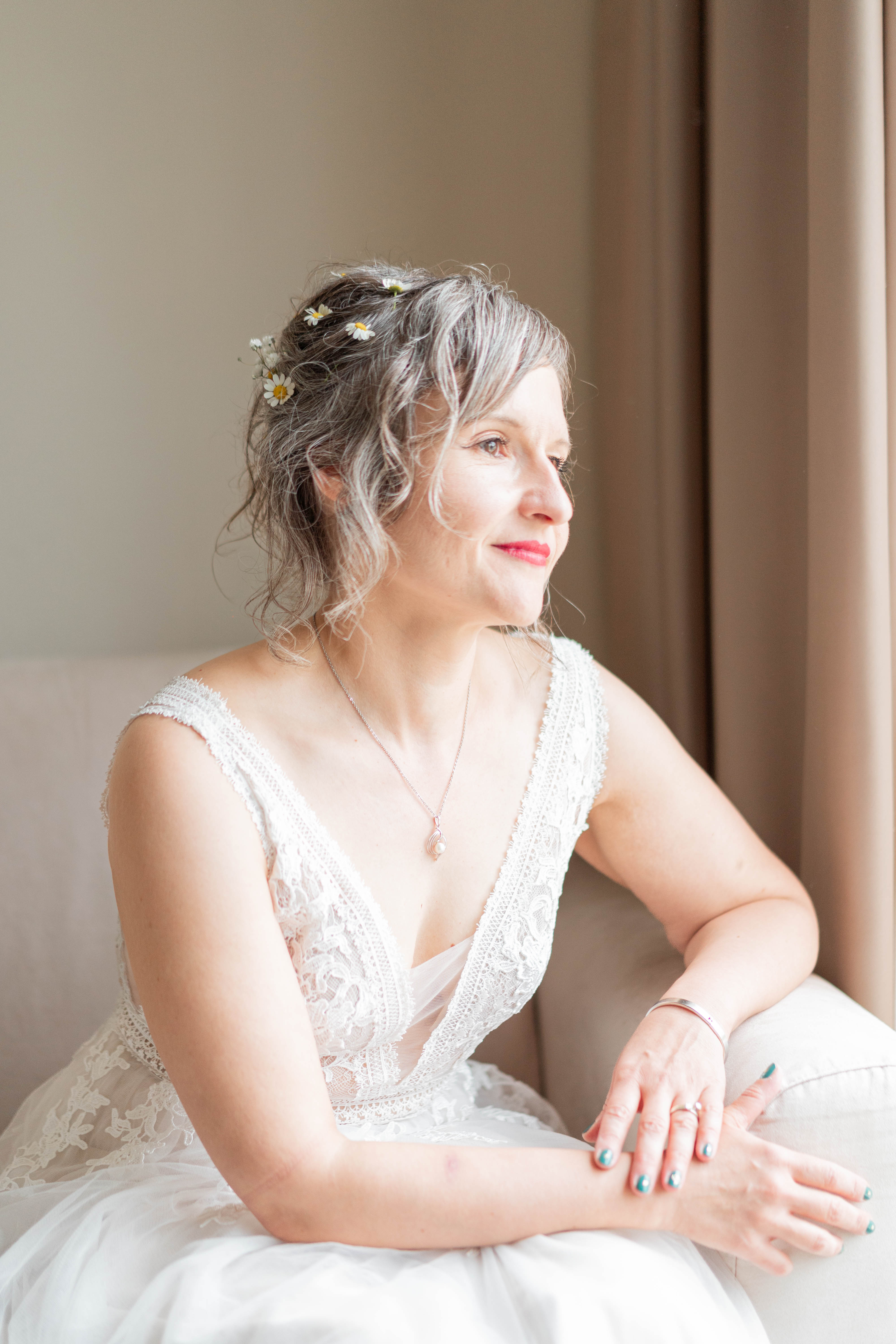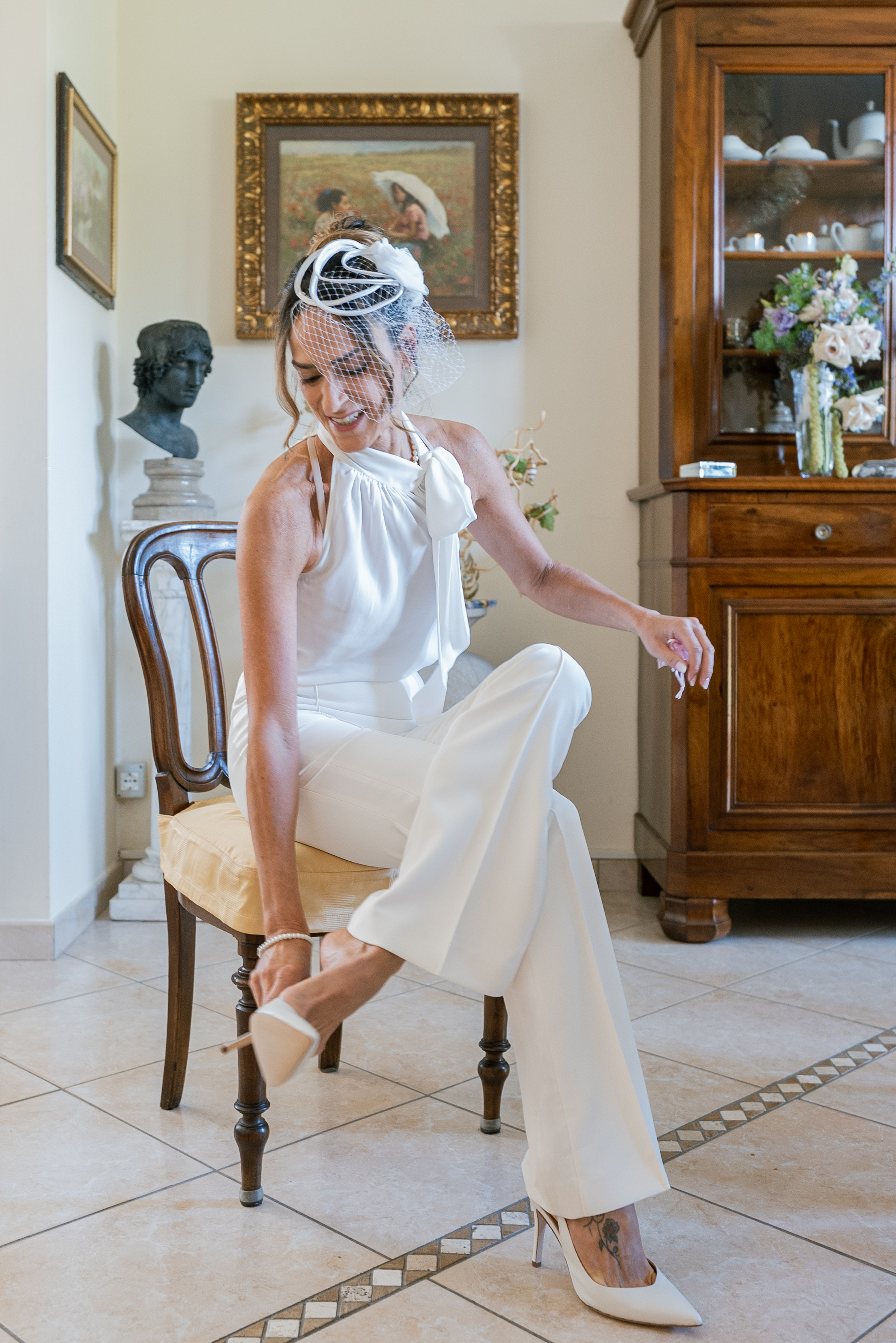 Desenzano e l’Hotel Rosa: l’inizio della giornata La giornata è iniziata a Desenzano del Garda, all’Hotel Rosa, una location elegante affacciata sul centro, scelta per accogliere i preparativi di Cristiane. Dopo giorni di pioggia, il tempo ha deciso di concedere una tregua. La luce era chiara, morbida, calda. Una di quelle giornate che sembrano arrivare apposta. Cristiane si preparava in camera insieme a un’amica. L’emozione era forte, ma composta. Le abbiamo chiesto di sedersi sul divano, avvolta dalla luce bianca che entrava dalla finestra: il suo volto, il suo corpo e la sua presenza erano semplicemente intensi.