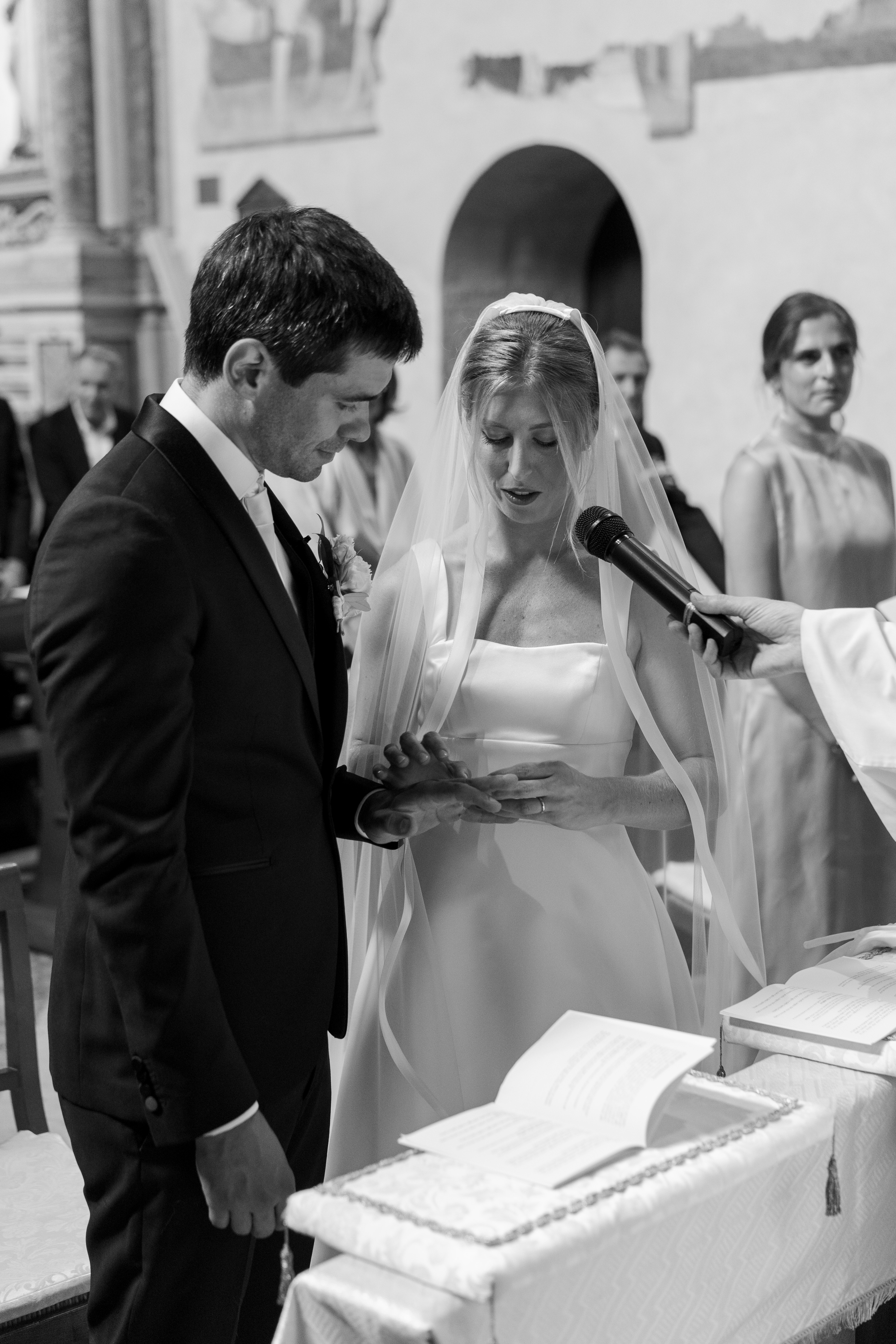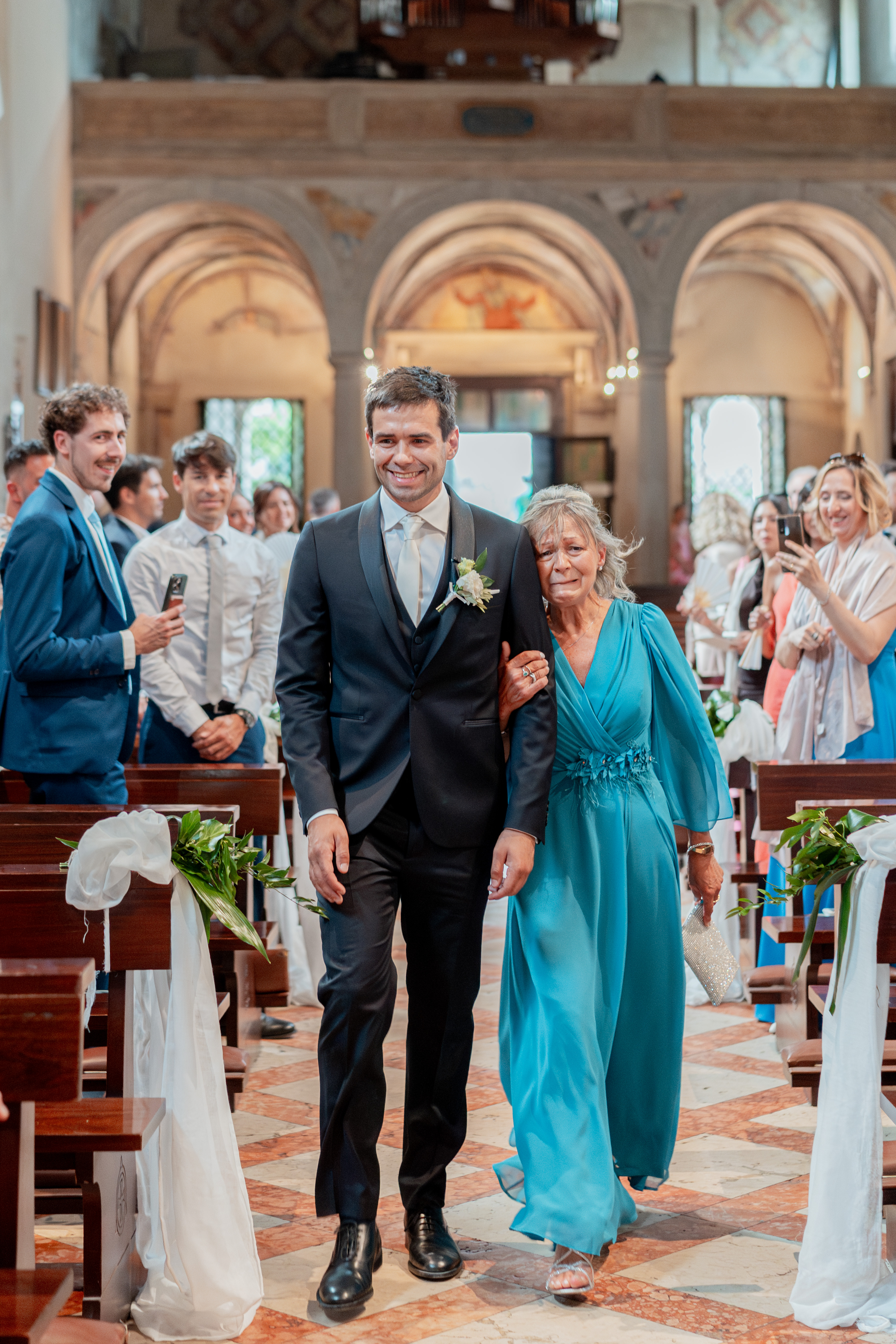 La cerimonia e un arrivo inaspettato. La messa è stata semplice, classica, intensa. Poi, a un certo punto, io e il mio partner abbiamo notato qualcosa in lontananza. Un cane. Con un ciondolo. E sopra… gli anelli. Un momento totalmente inaspettato. Con grande attenzione ci siamo mossi lungo il corridoio centrale, accucciati, cercando di raccontare la scena senza disturbare gli sposi né gli invitati. Per me è fondamentale non essere d’intralcio, né all’evento né agli altri professionisti. Era un labrador bellissimo, accompagnato dal fratello della sposa. Un momento autentico, naturale, accolto con serenità anche dal sacerdote. Una di quelle scene che non dimentichi, e che non avevo mai visto prima.