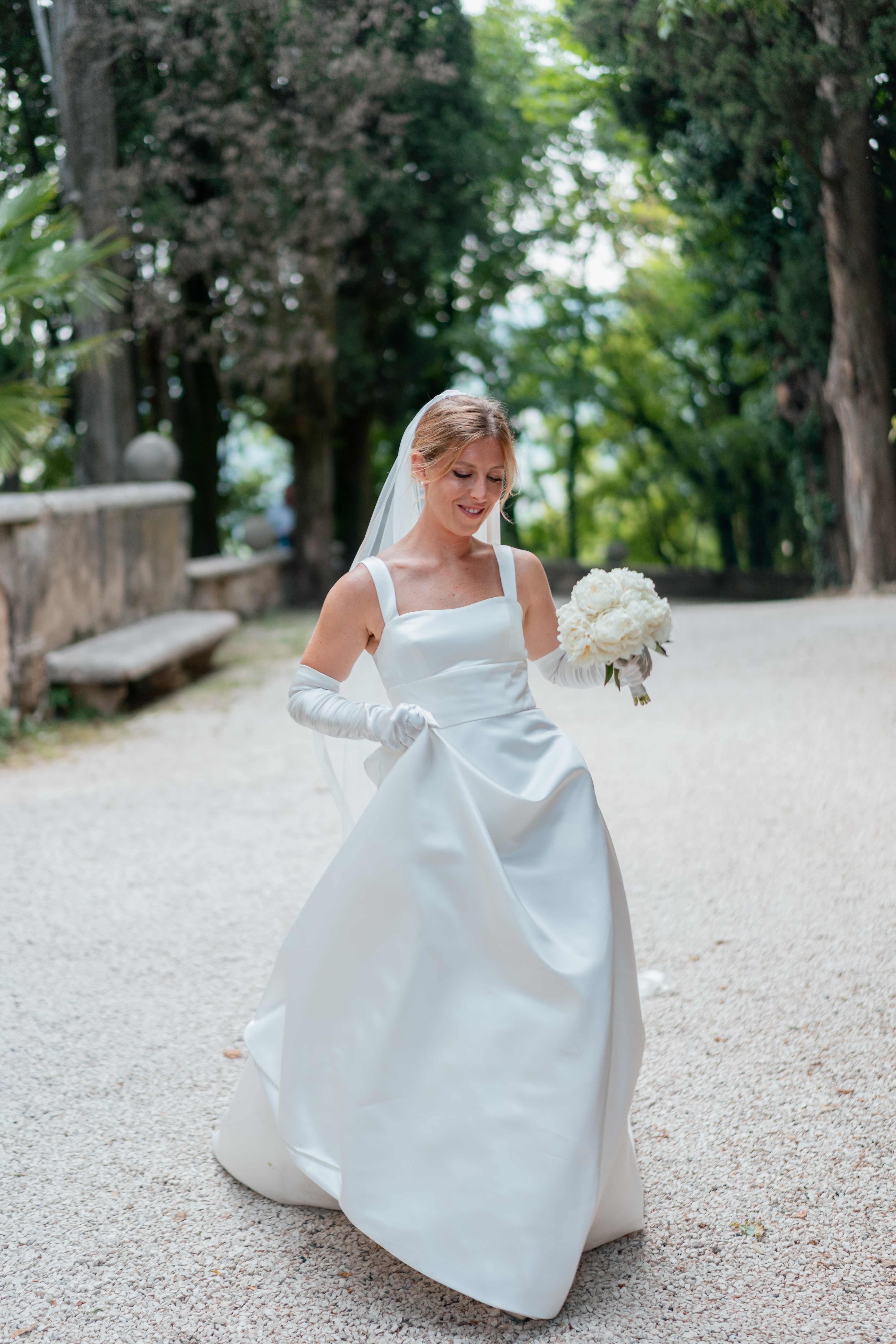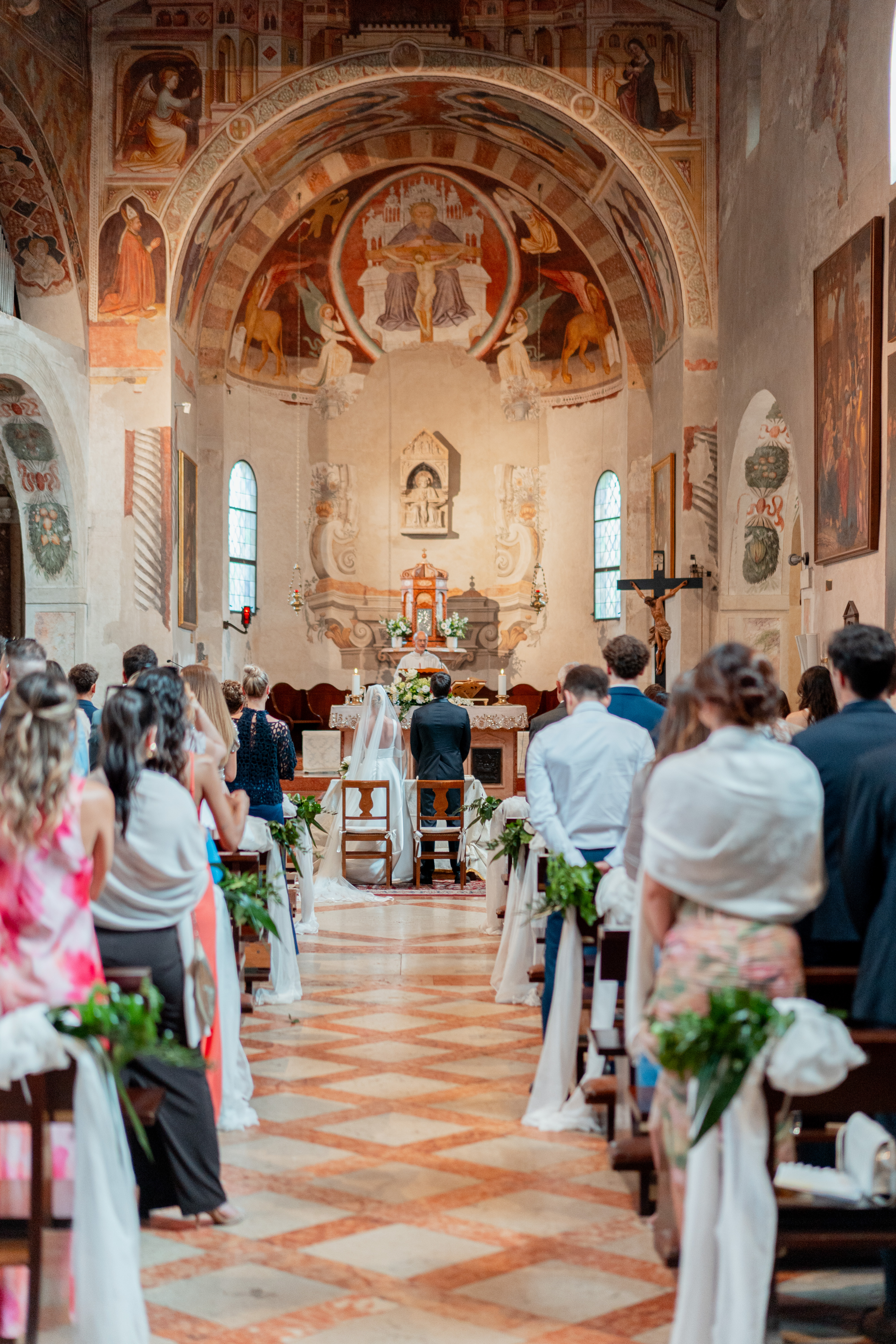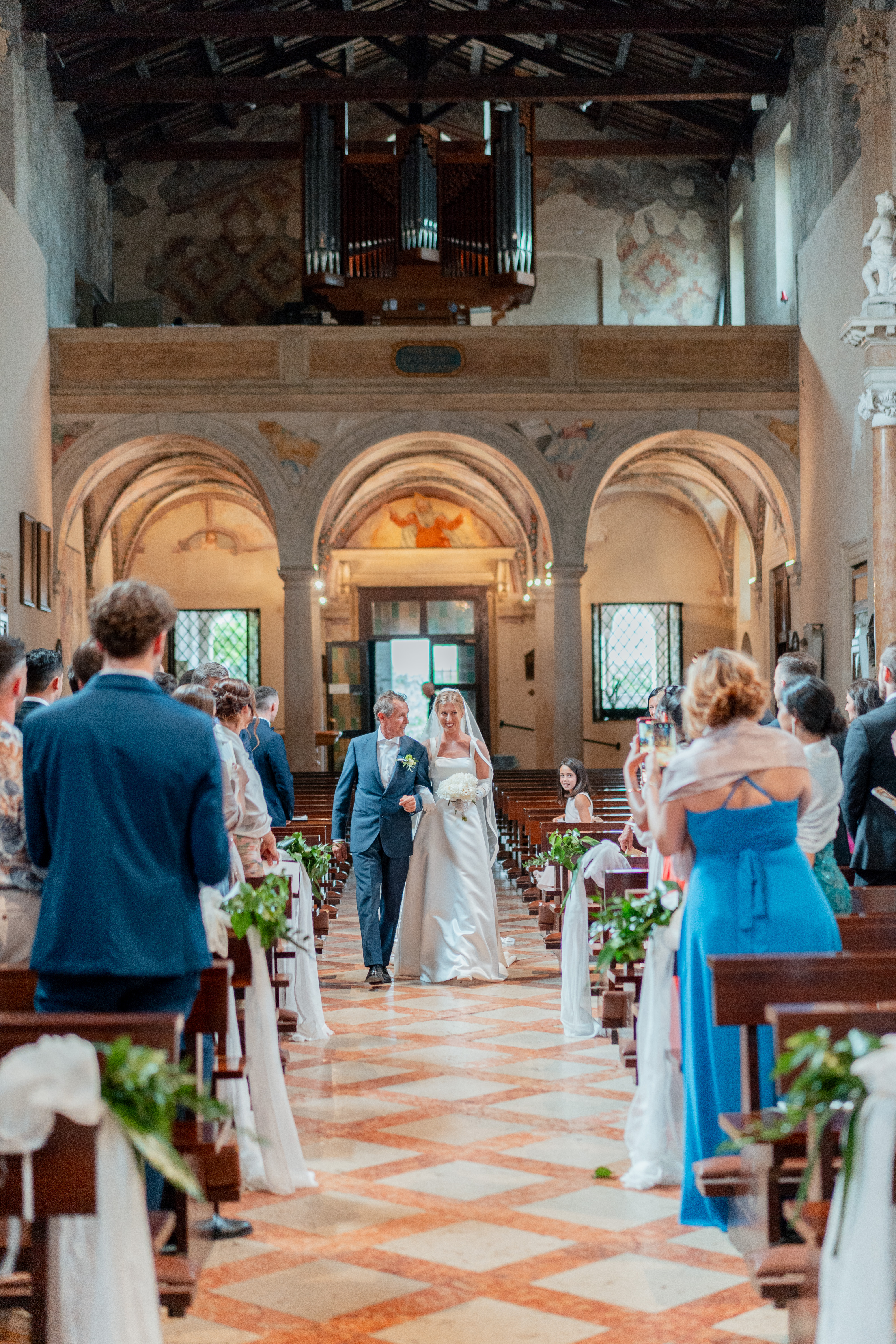 Una giornata che ricorderò a lungo. Il 20 giugno 2025 lo ricordo molto bene. I giorni precedenti erano stati piovosi, incerti, ma quella giornata ha deciso di sorprenderci. Ero a Verona con il mio partner. Erano circa le due del pomeriggio quando ci siamo ritrovati davanti alla Chiesa della Santissima Trinità, insieme alla wedding planner e alla fiorista. Il caldo era intenso, quasi irreale. La strada in marmo bianco amplificava la luce e il calore, e dopo appena mezz’ora eravamo già tutti “sciolti”. Poi, dietro al cancello, hanno iniziato ad arrivare i primi ospiti. Da lì, la giornata è davvero iniziata.