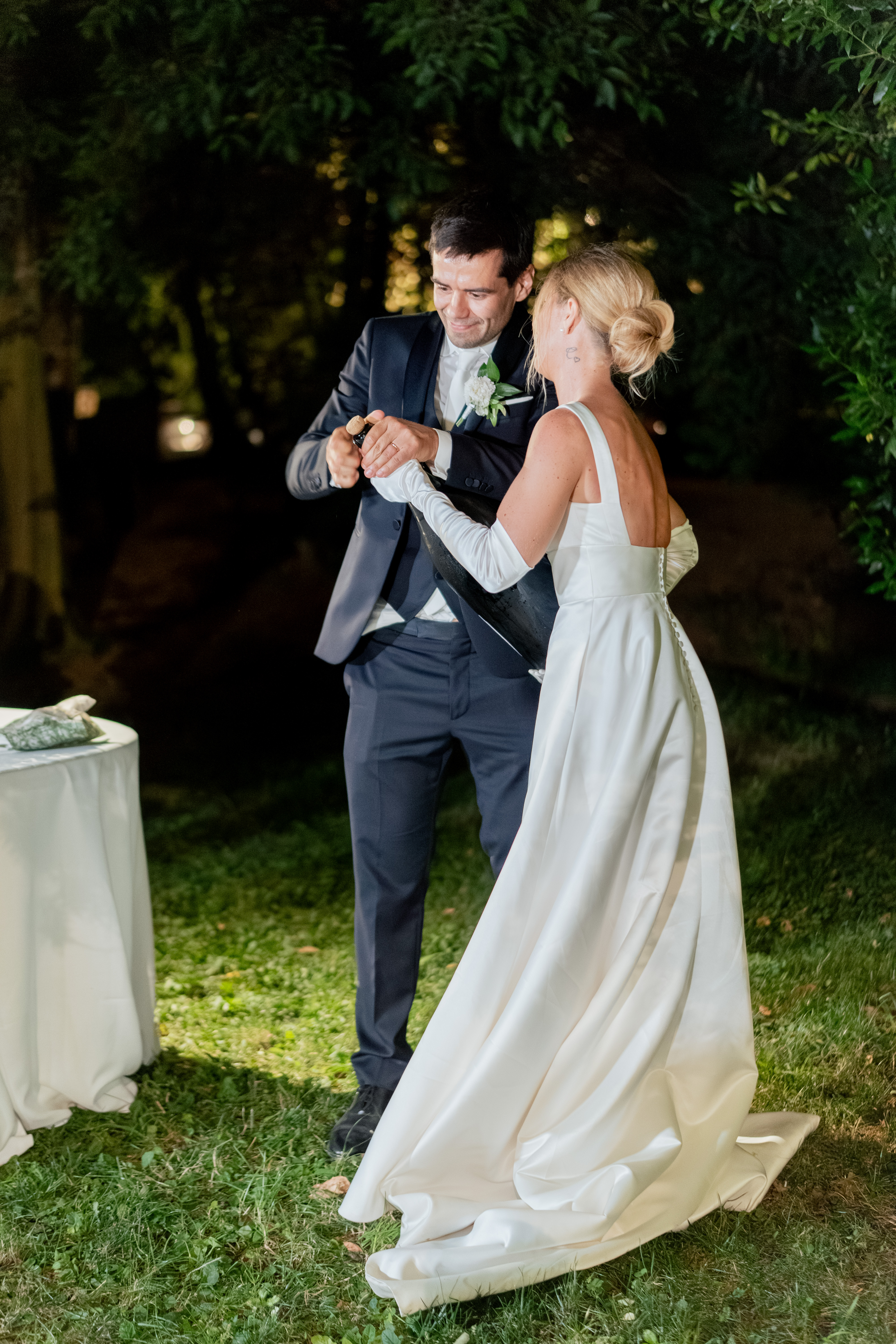 Ritratti spontanei, tra complicità e leggerezza. Dopo l’aperitivo ci siamo dedicati alla coppia. Erano sciolti, rilassati, pieni di voglia di stare insieme. Si baciavano, ridevano, si cercavano continuamente. La sposa non vedeva l’ora di divertirsi e lasciarsi andare, e insieme ci siamo davvero sbizzarriti. Ho valorizzato il suo abito, che mi piaceva moltissimo, ma anche Giorgio, con la sua naturalezza. E naturalmente il loro labrador, parte integrante della giornata e della loro famiglia. Tutto è stato spontaneo, senza forzature. Esattamente come dovrebbe essere.