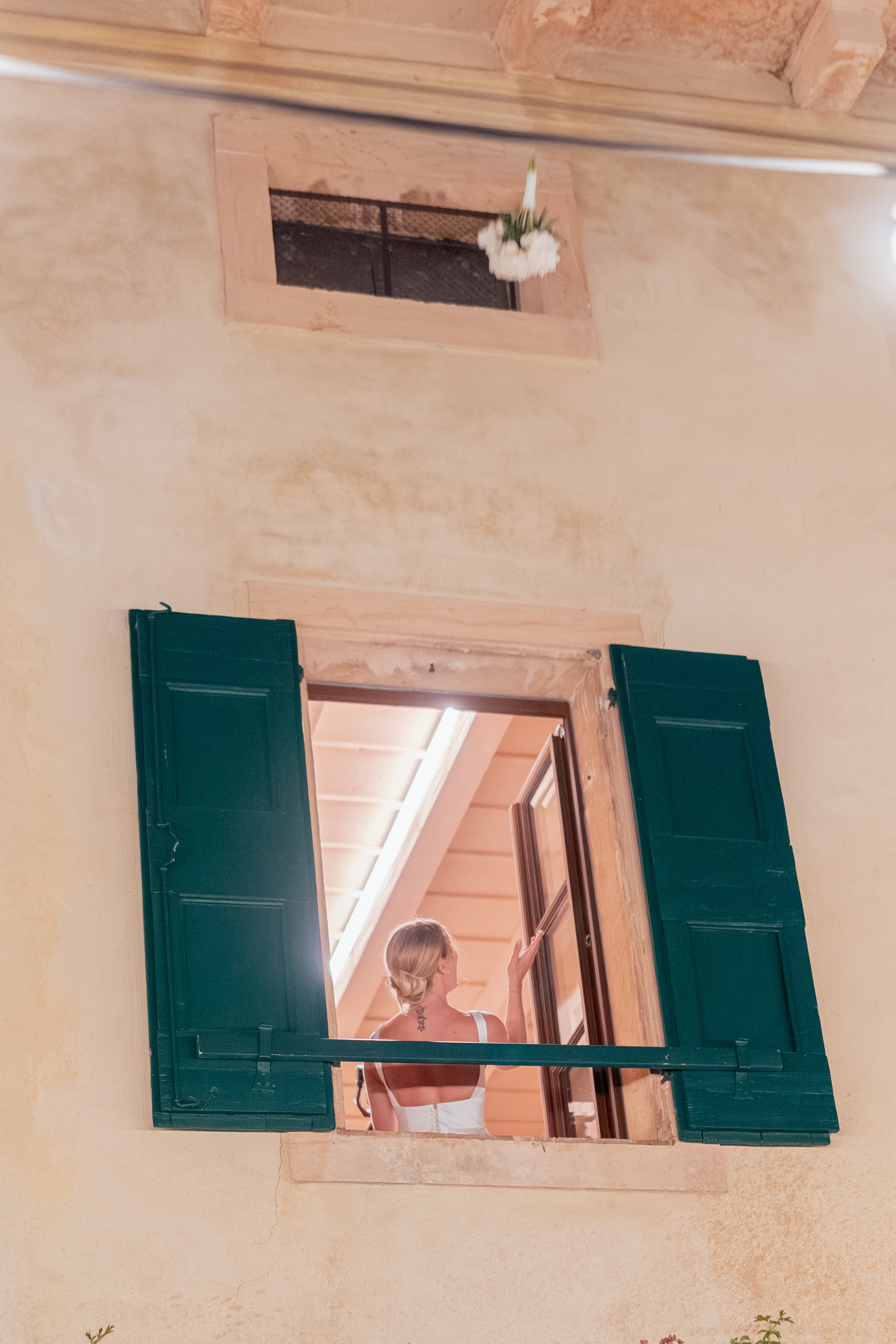 L’attesa: due strade che portano allo stesso momento Dopo la cerimonia civile, Bianca ed io ci siamo allontanati. Marci, insieme agli invitati, ha raggiunto lo Splendido Bay, ignaro di ciò che sarebbe accaduto di lì a poco. Bianca ha indossato il secondo abito: lungo, avvolgente, essenziale. Un vestito che raccontava la sua forma, la sua eleganza, la sua essenza più profonda.