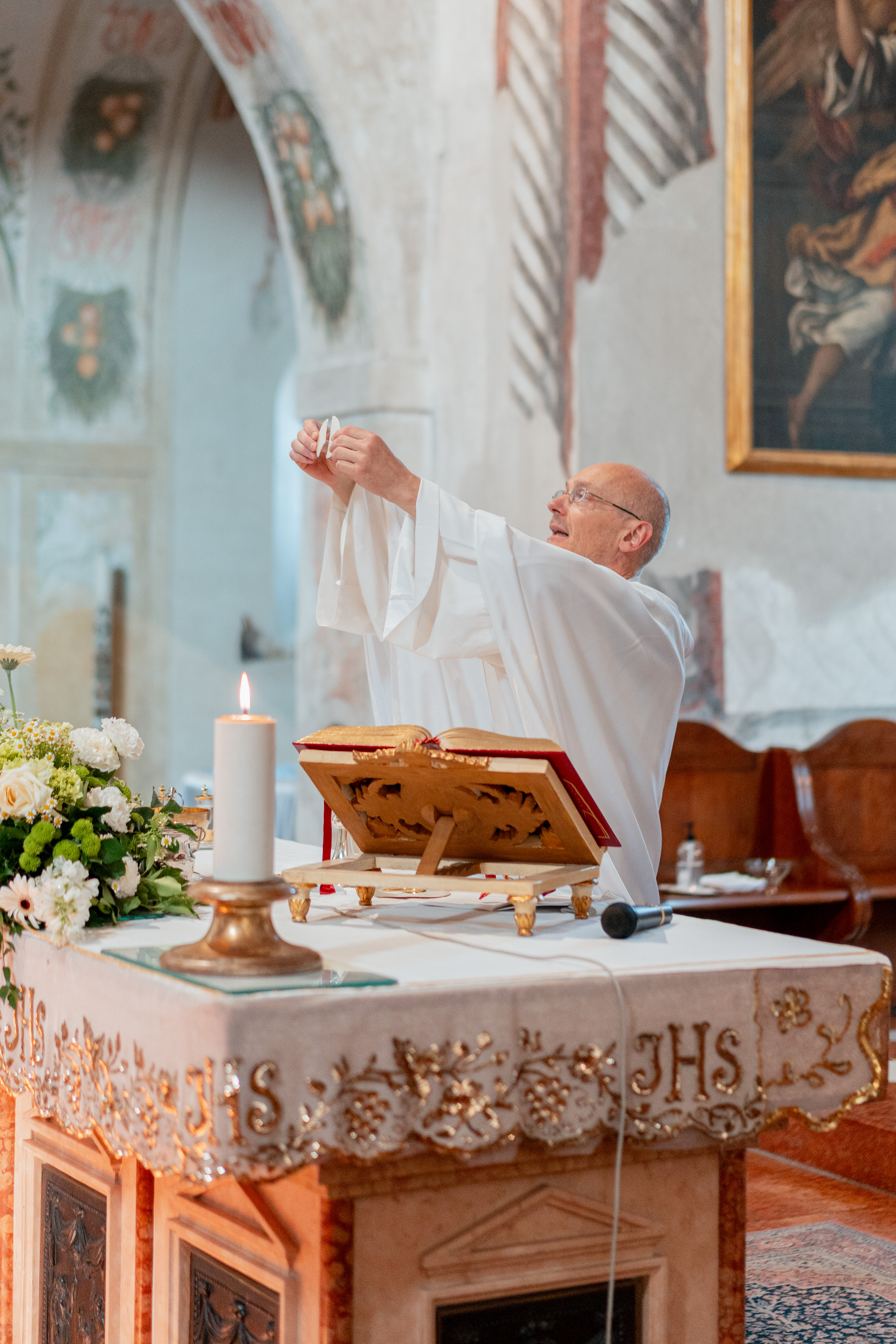 Il rito della candela: una cerimonia dal significato profondo Durante la cerimonia, Luca e Cristiane hanno celebrato il rito della candela, una tradizione tipica dei matrimoni tedeschi. Due sabbie di colore diverso vengono unite in un’unica candela. Il passato si mescola, si dissolve, lasciando spazio a qualcosa di nuovo. Quando la candela viene accesa, rappresenta un nuovo inizio, una vita condivisa che nasce da ciò che è stato, senza rinnegarlo. È stato uno dei momenti più intensi e significativi dell’intera giornata.