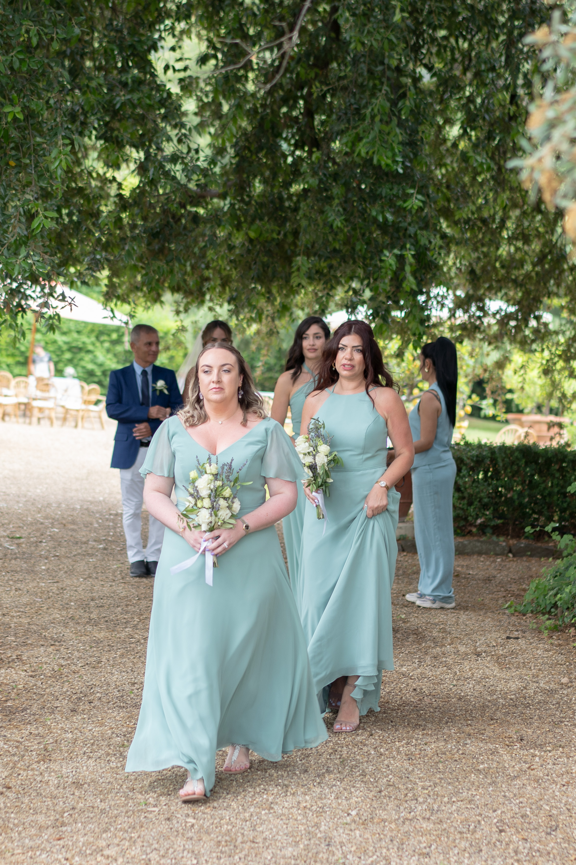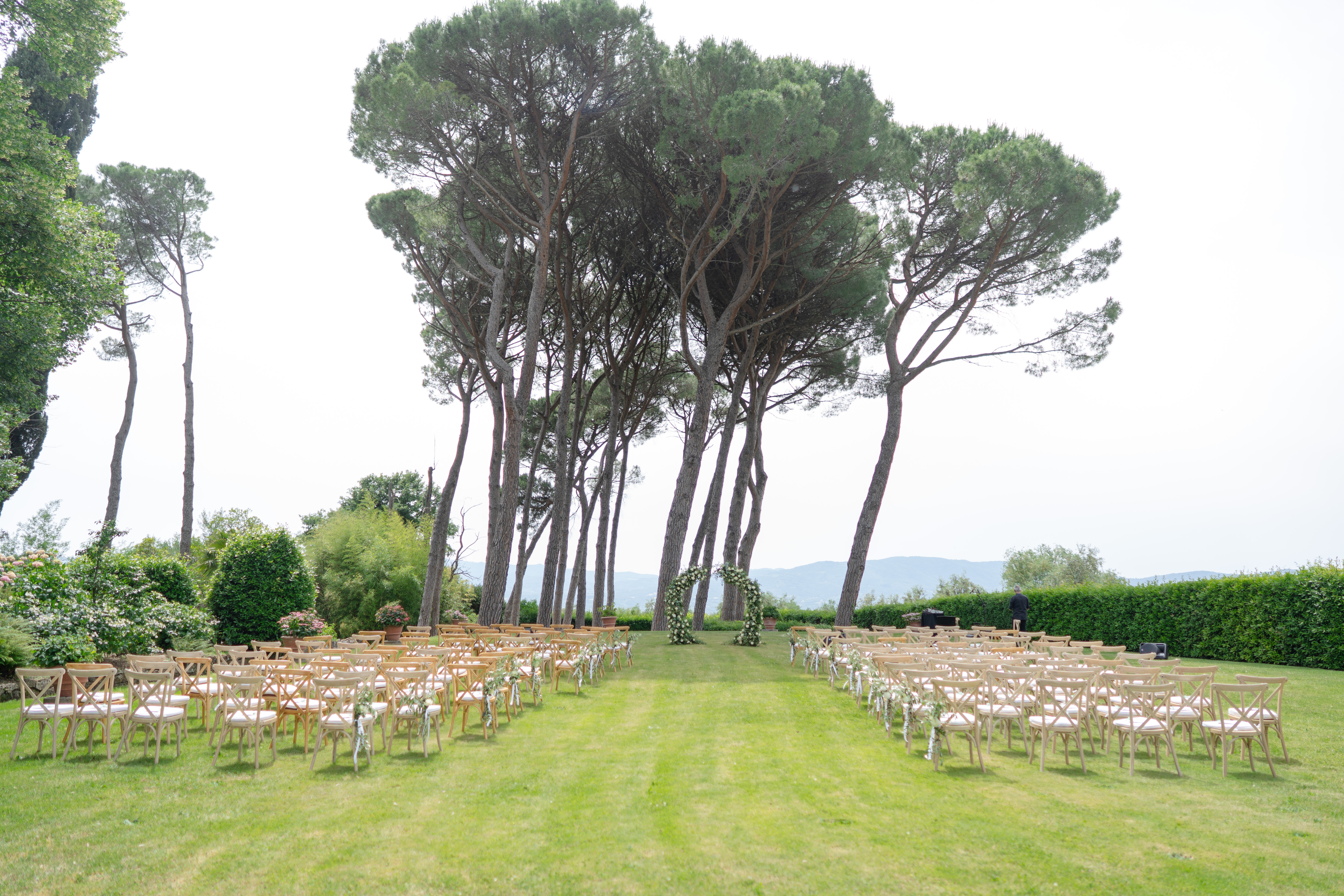 Hamish e Claire arrivano da Londra. Gentili, eleganti, profondamente “british” nel modo di porsi, ma con un’energia calorosa che ha riempito ogni spazio della giornata. Il loro matrimonio in Toscana, ad Arezzo, ha riunito oltre 300 invitati in una delle location più imponenti della zona: Fattoria Casanova, una villa storica immersa tra ulivi, colline e luce morbida estiva. Un evento di questa portata richiede visione, organizzazione e una squadra solida.