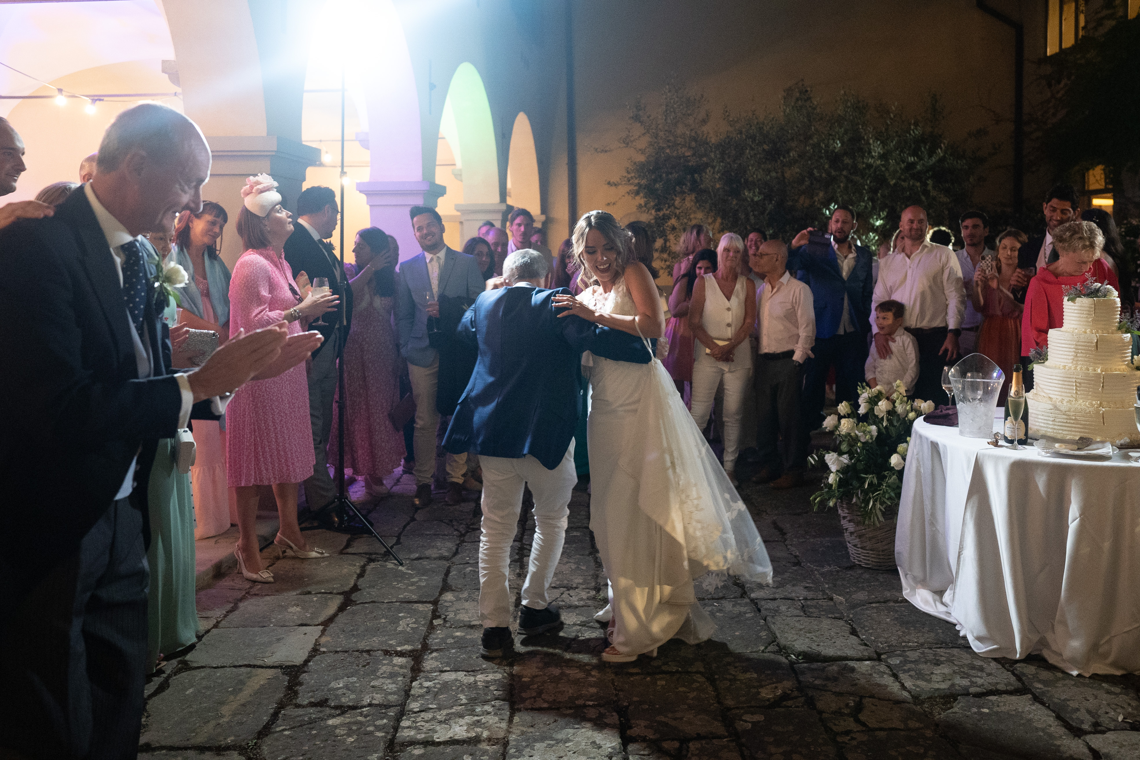 La cena e gli speech: il cuore emotivo La scena più intensa è arrivata a cena, durante gli speech. Lì le emozioni si sono sciolte. Il discorso del papà di Hamish mi ha colpito profondamente. Quando le persone sono belle dentro, lo senti. E quell’emotività, per me, è il segno più chiaro di un lavoro riuscito. Il primo ballo è stato altrettanto magico. Semplice, elegante, vero.
